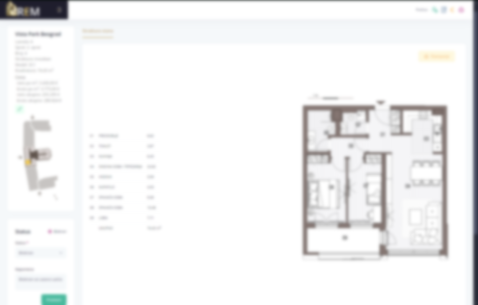 Modul Proizvodi omogućava hijerarhijsko kreiranje i upravljanje proizvodima, od placa i parcele do konkretnih jedinica poput stanova, lokala, garaža, garažnih mesta i parking mesta. Sistem podržava unos, izmenu i brisanje svih elemenata hijerarhije, uz intuitivan 2D vizuelni prikaz stanova organizovan po hijerarhijskim celinama i njihovom statusu. Modul obezbeđuje pretragu proizvoda prema različitim parametrima, uključujući strukturu, kvadraturu, orijentaciju, lokaciju i status.